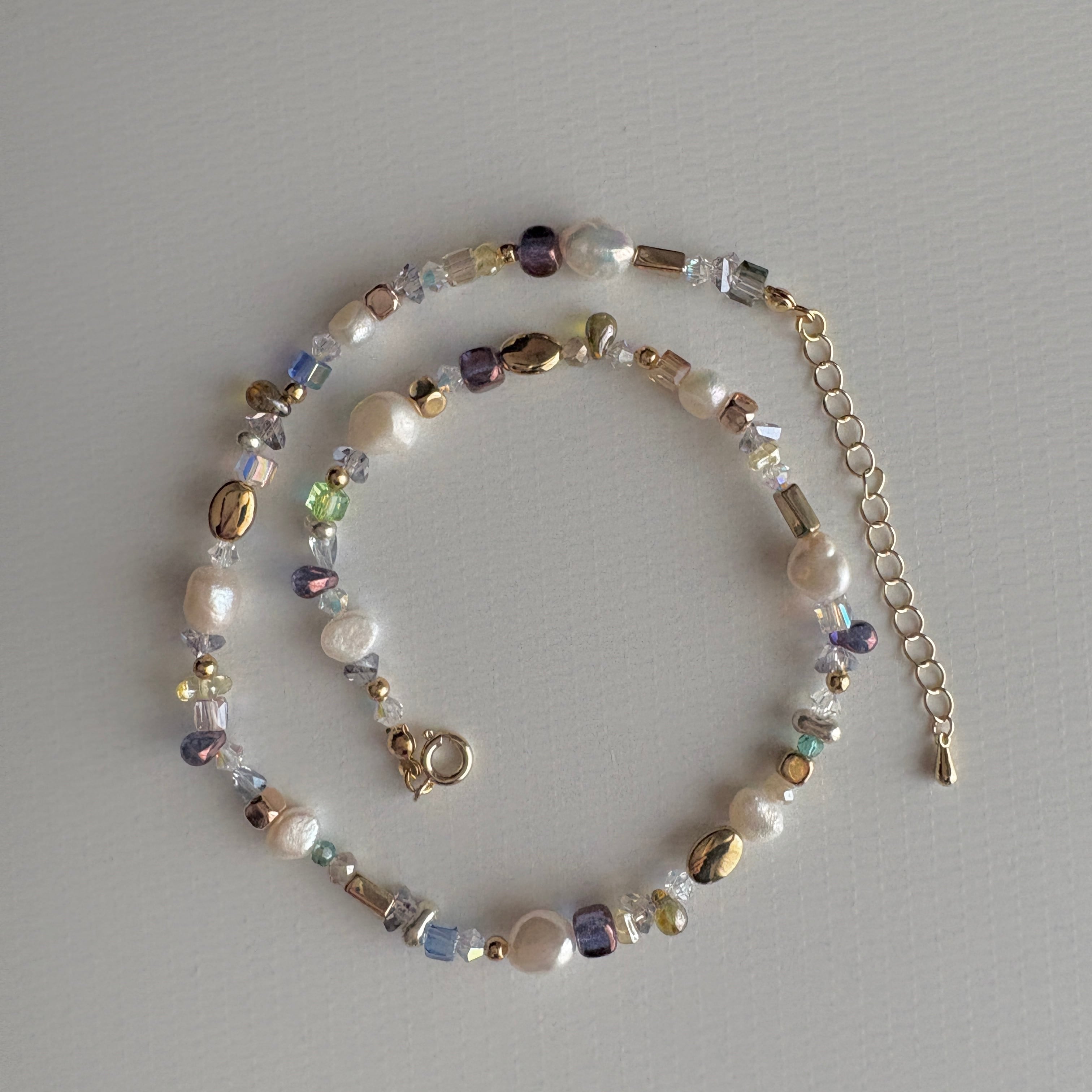 淡水パール、ガラスビーズなどを使用したネックレスです。