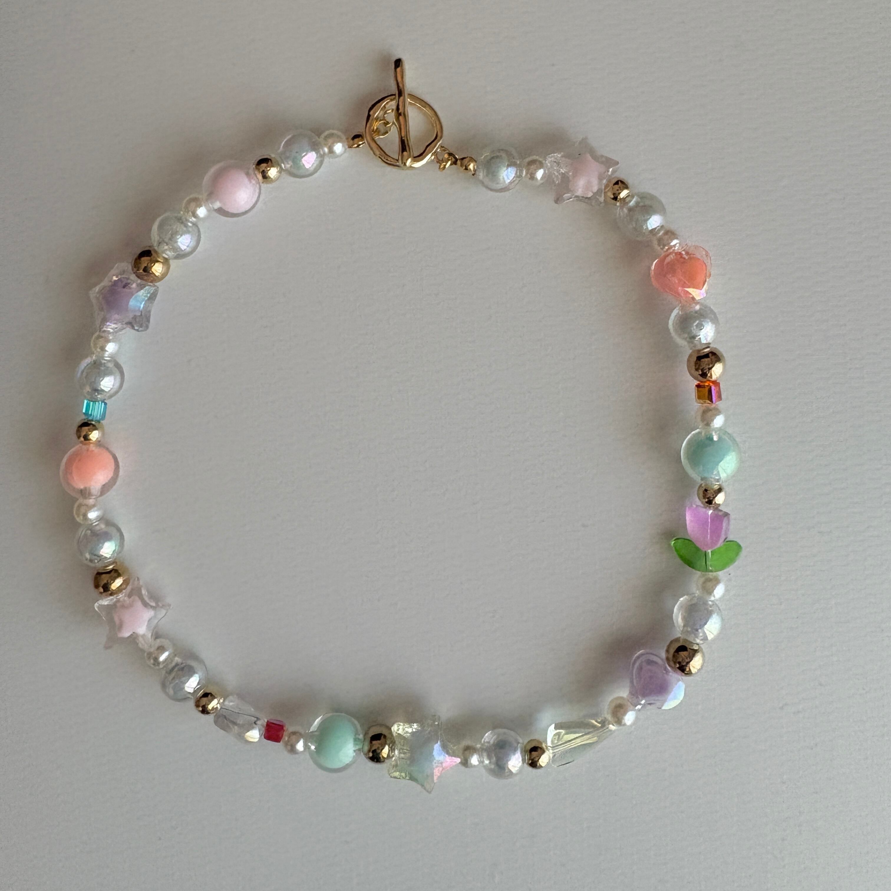 様々なビーズを使用し、カラフルに仕上げました。