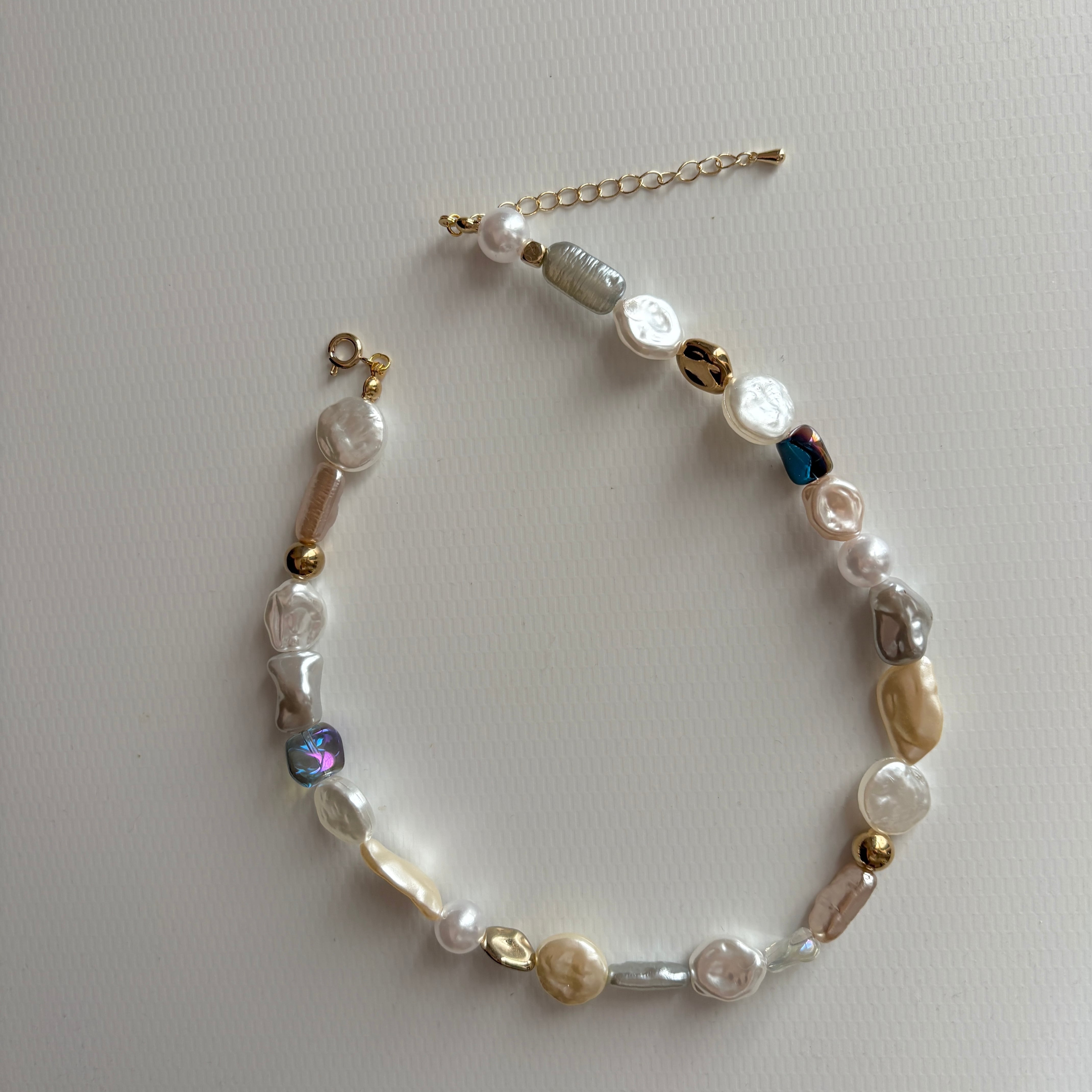 大小様々なパールビーズを使用したネックレスです。