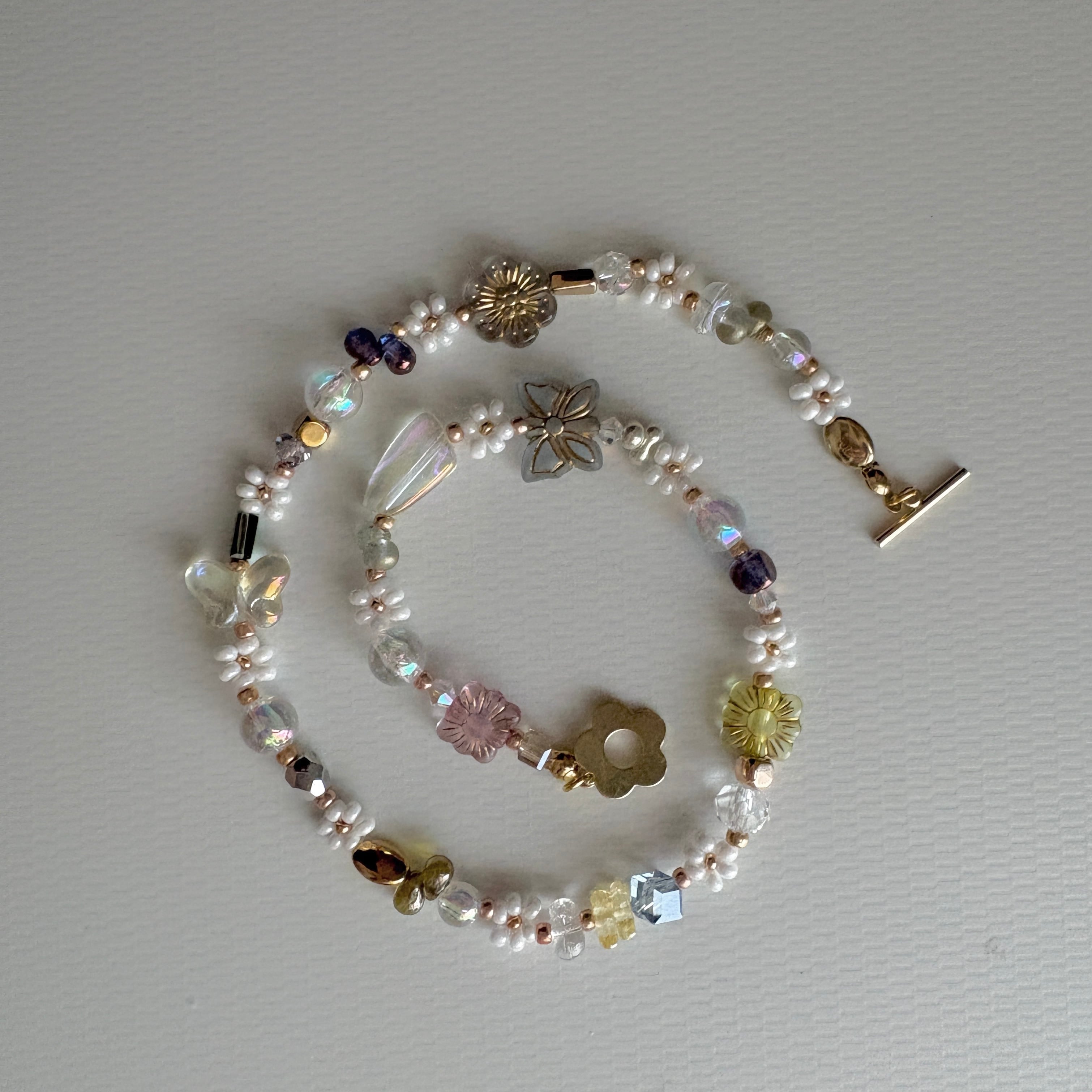様々なビーズを使用したネックレスです。