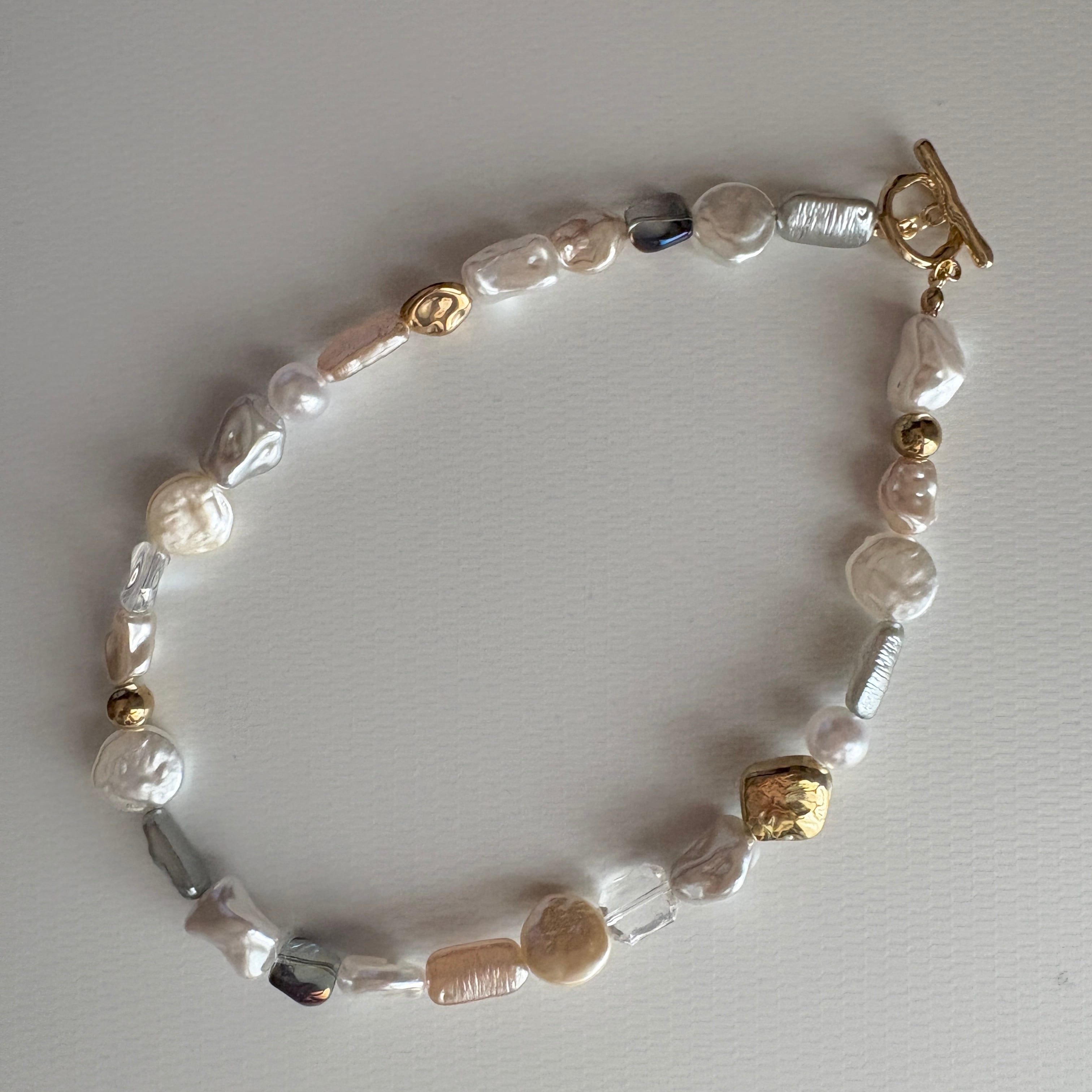 大小様々なパールビーズを使用したネックレスです。