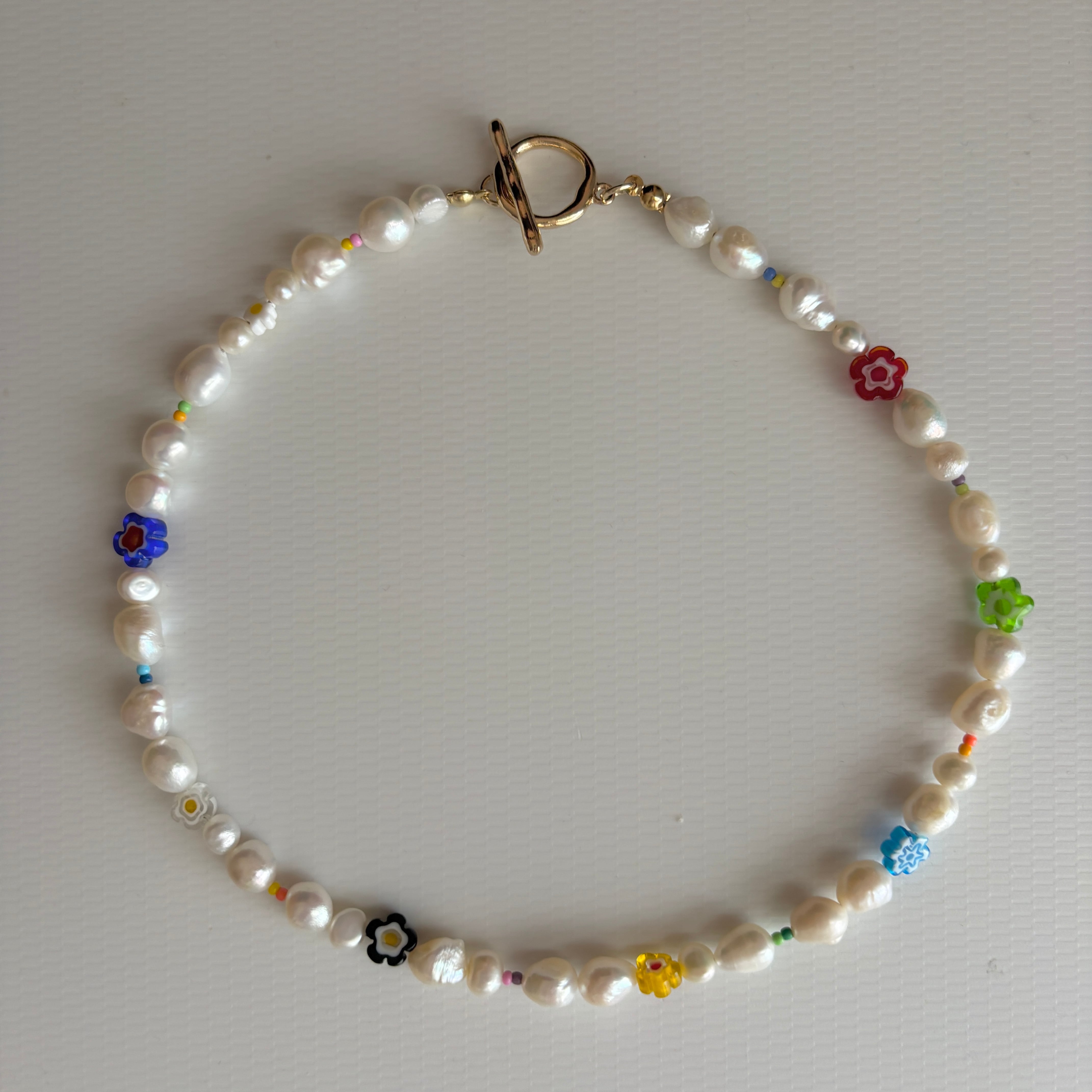 淡水パールとミルフィオリビーズを使用したネックレスです。