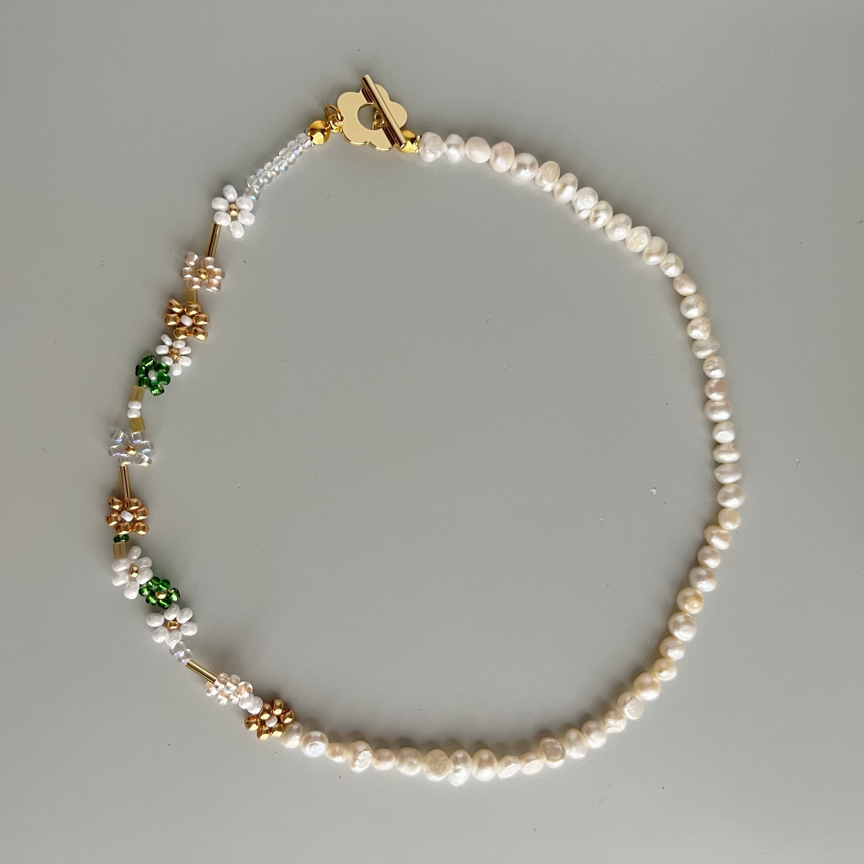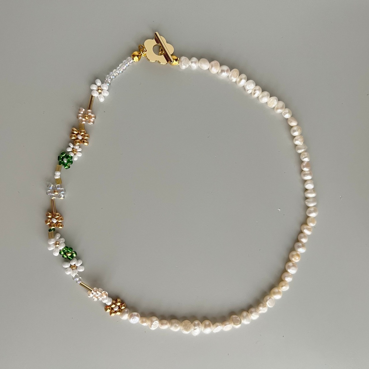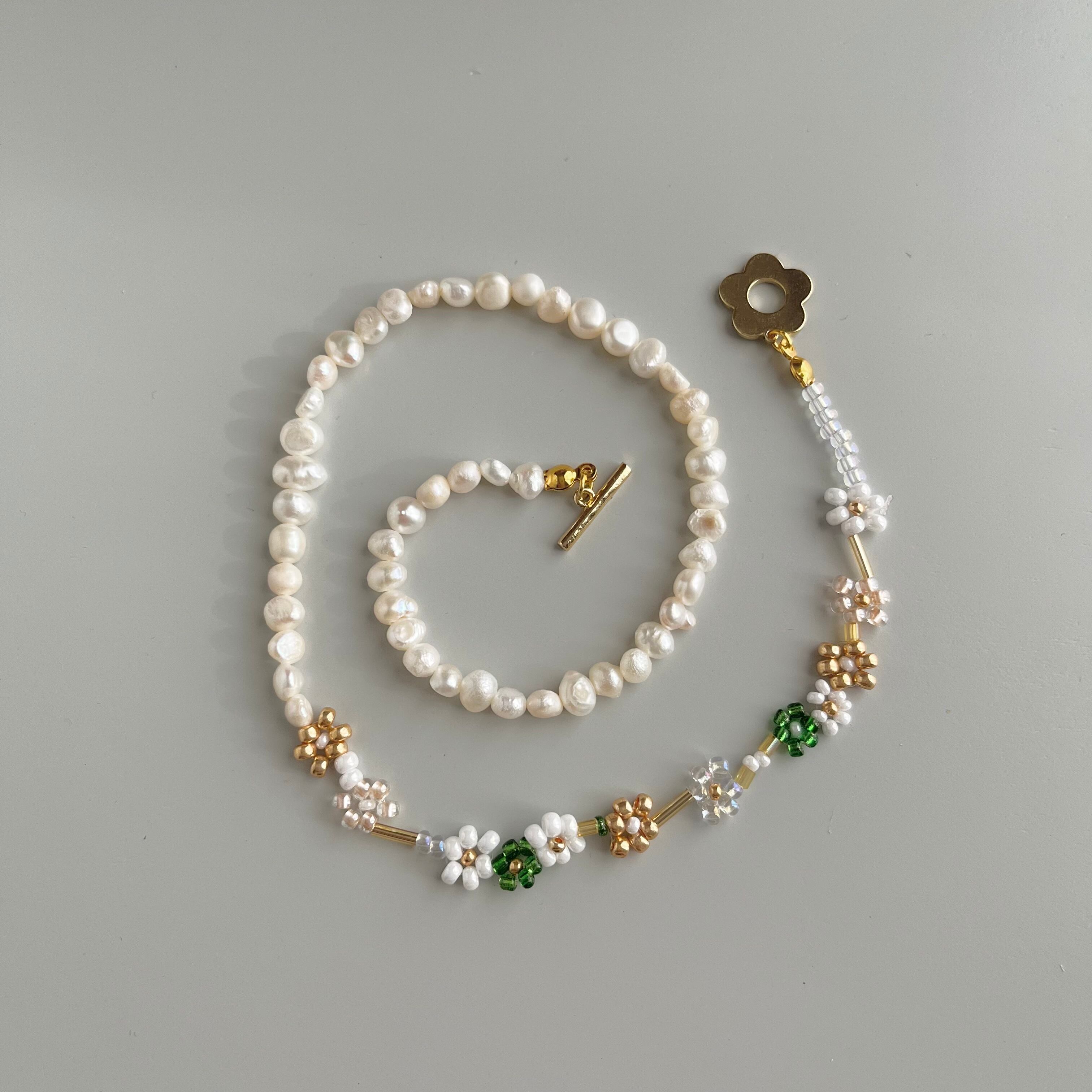 淡水パールとフラワービーズのネックレス(チョーカー)です。