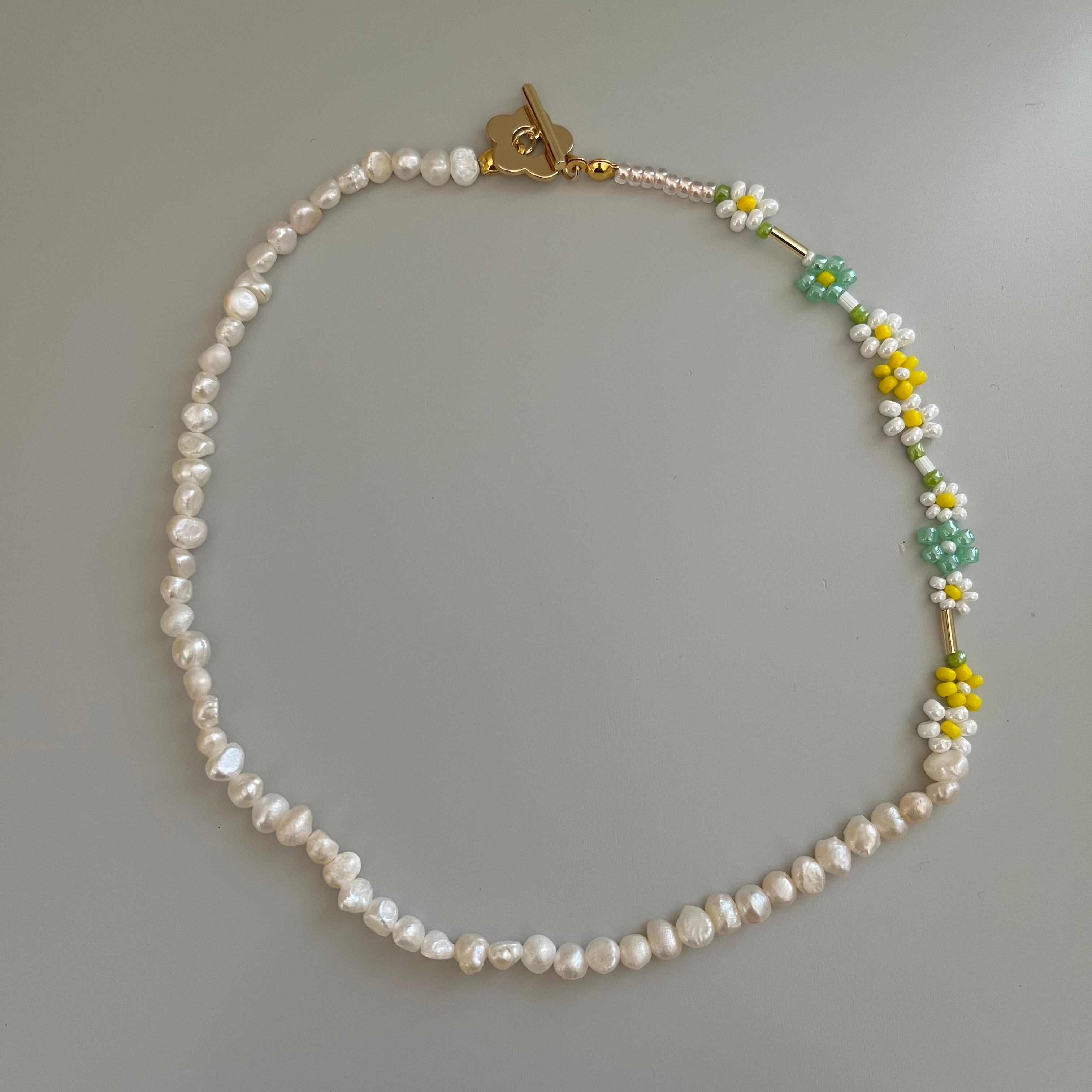 淡水パールとフラワービーズのネックレス(チョーカー)です。
