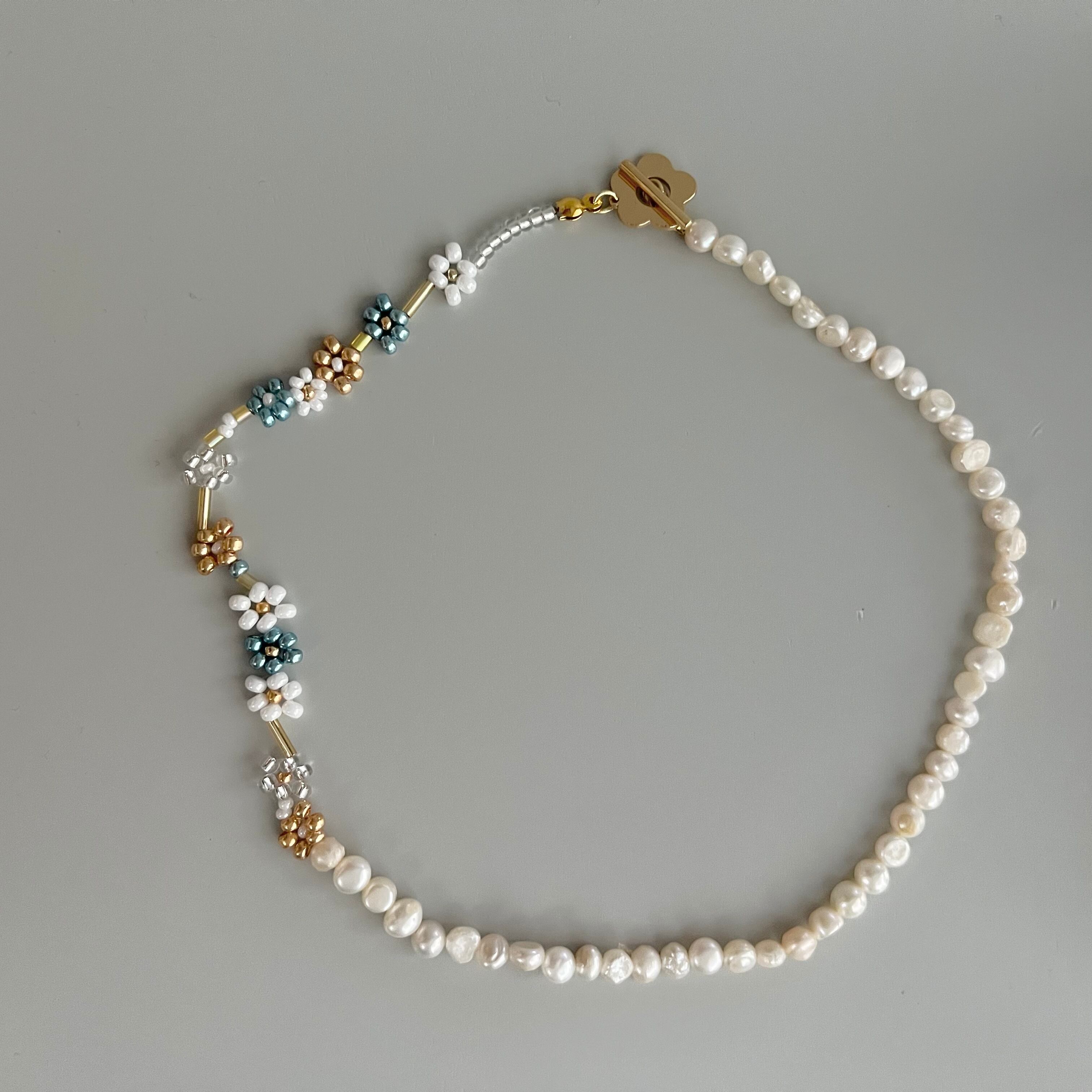 淡水パールとフラワービーズのネックレス(チョーカー)です。