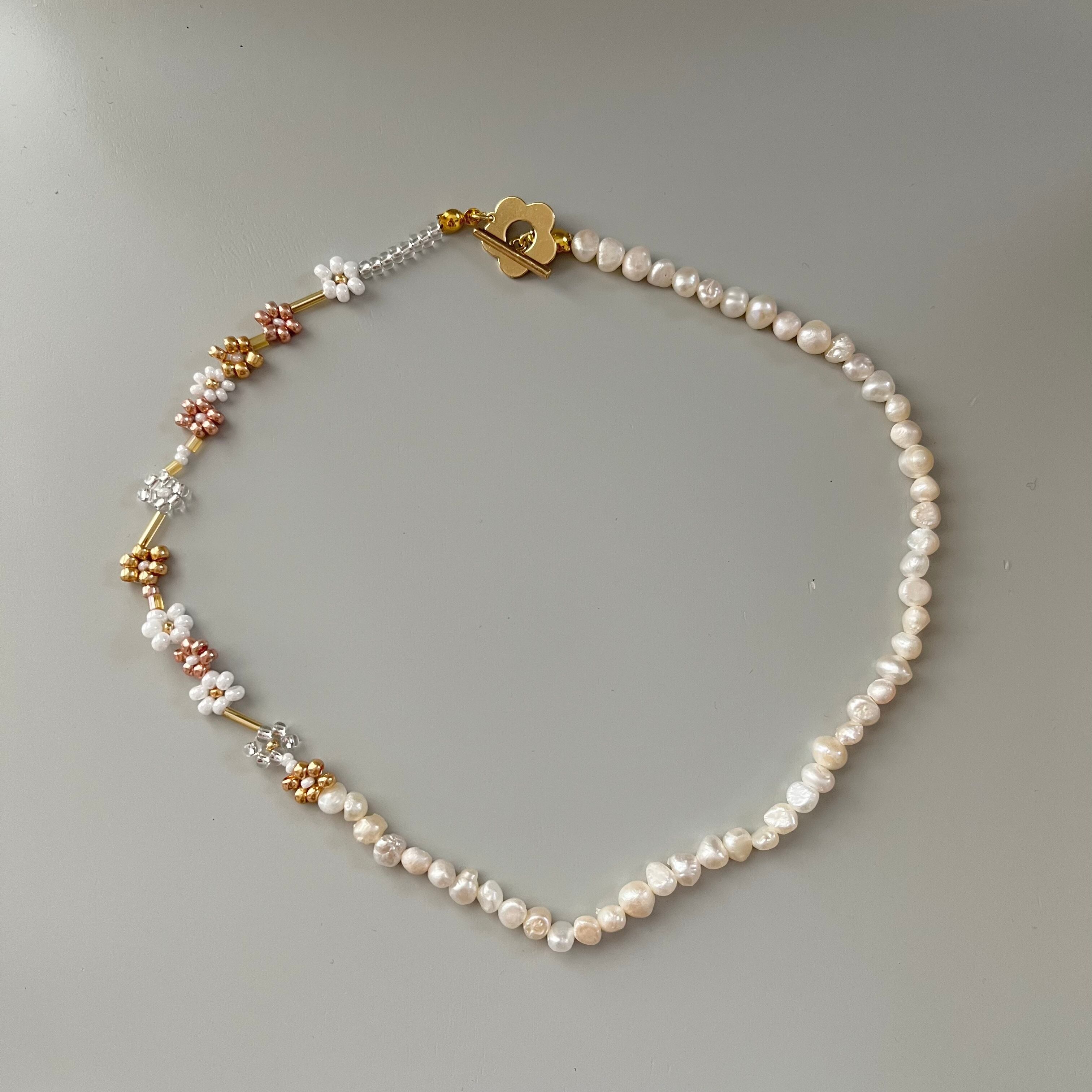 淡水パールとフラワービーズのネックレス(チョーカー)です。