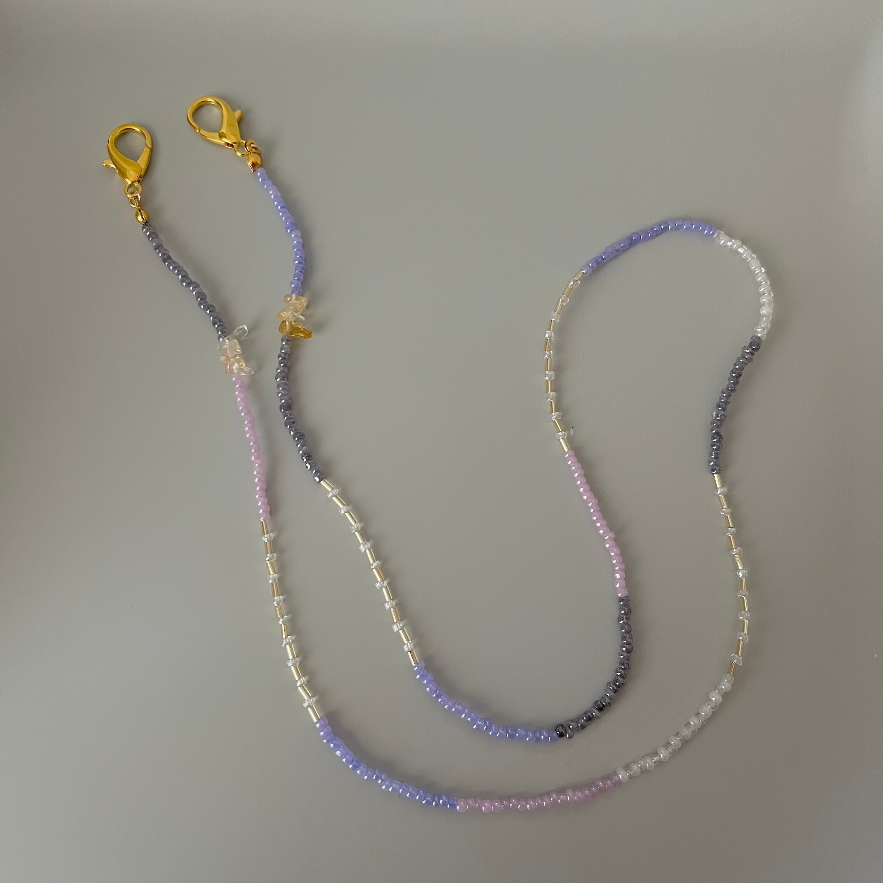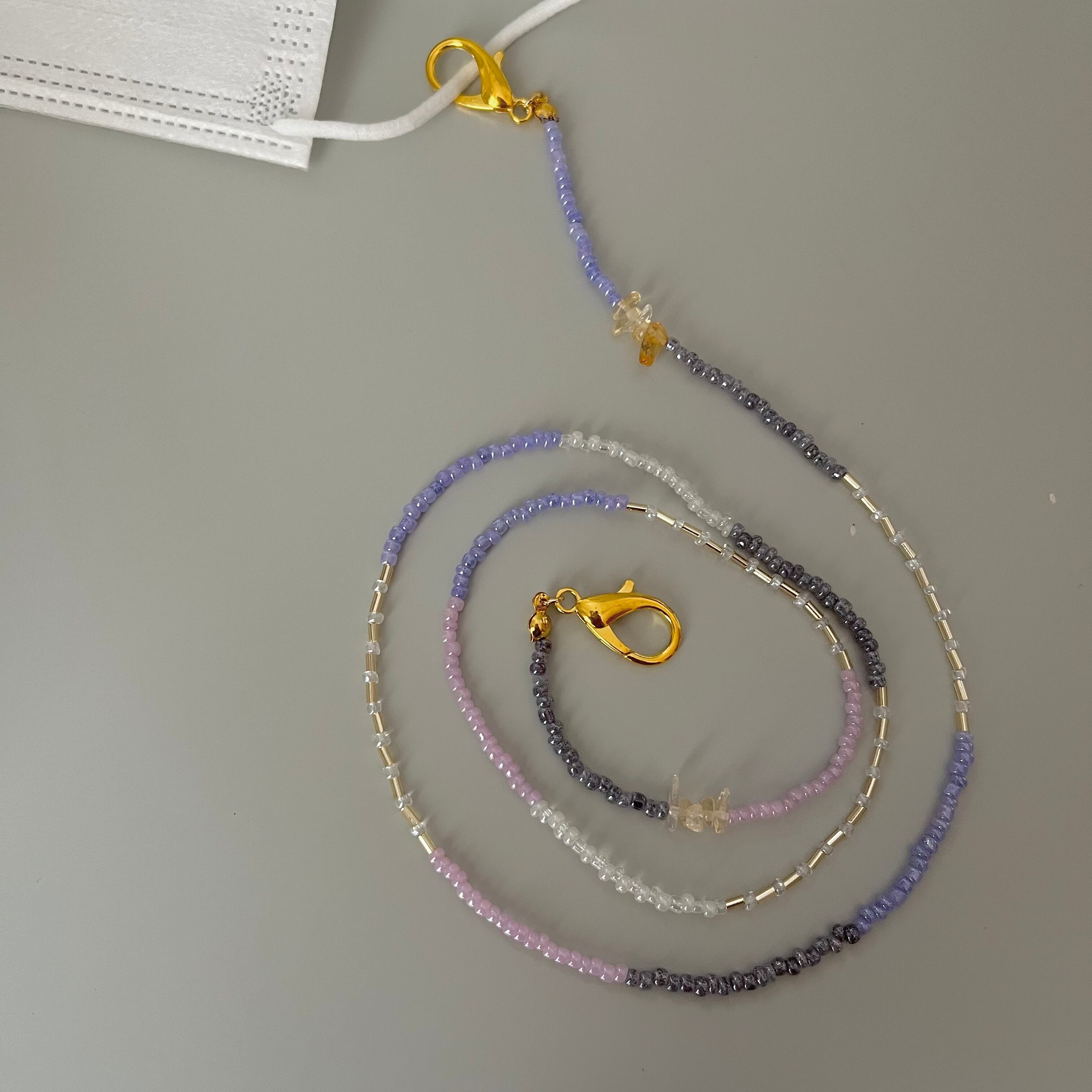 紫ベースで、顔まわりにはシトリンを使用し、大人っぽく仕上げています。
