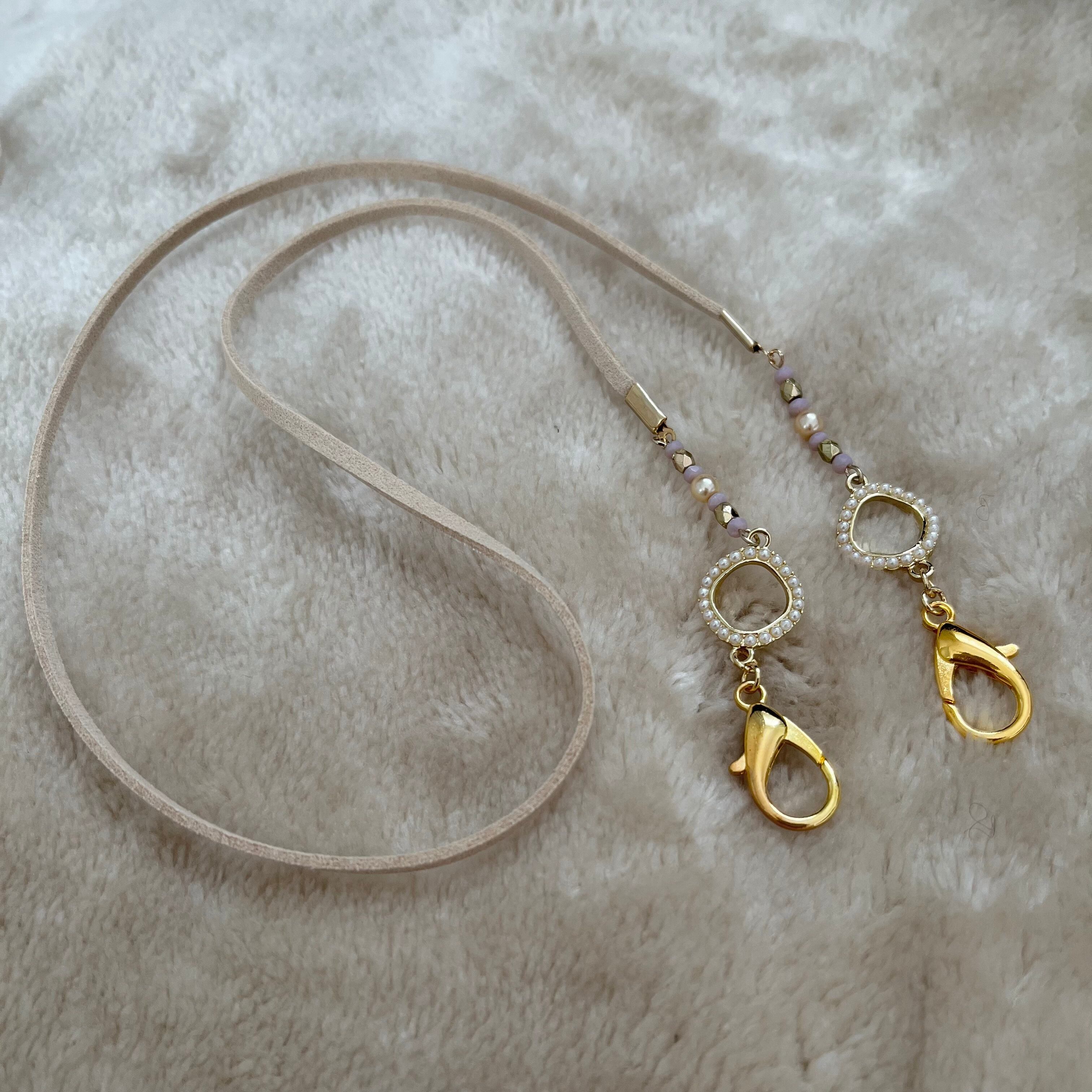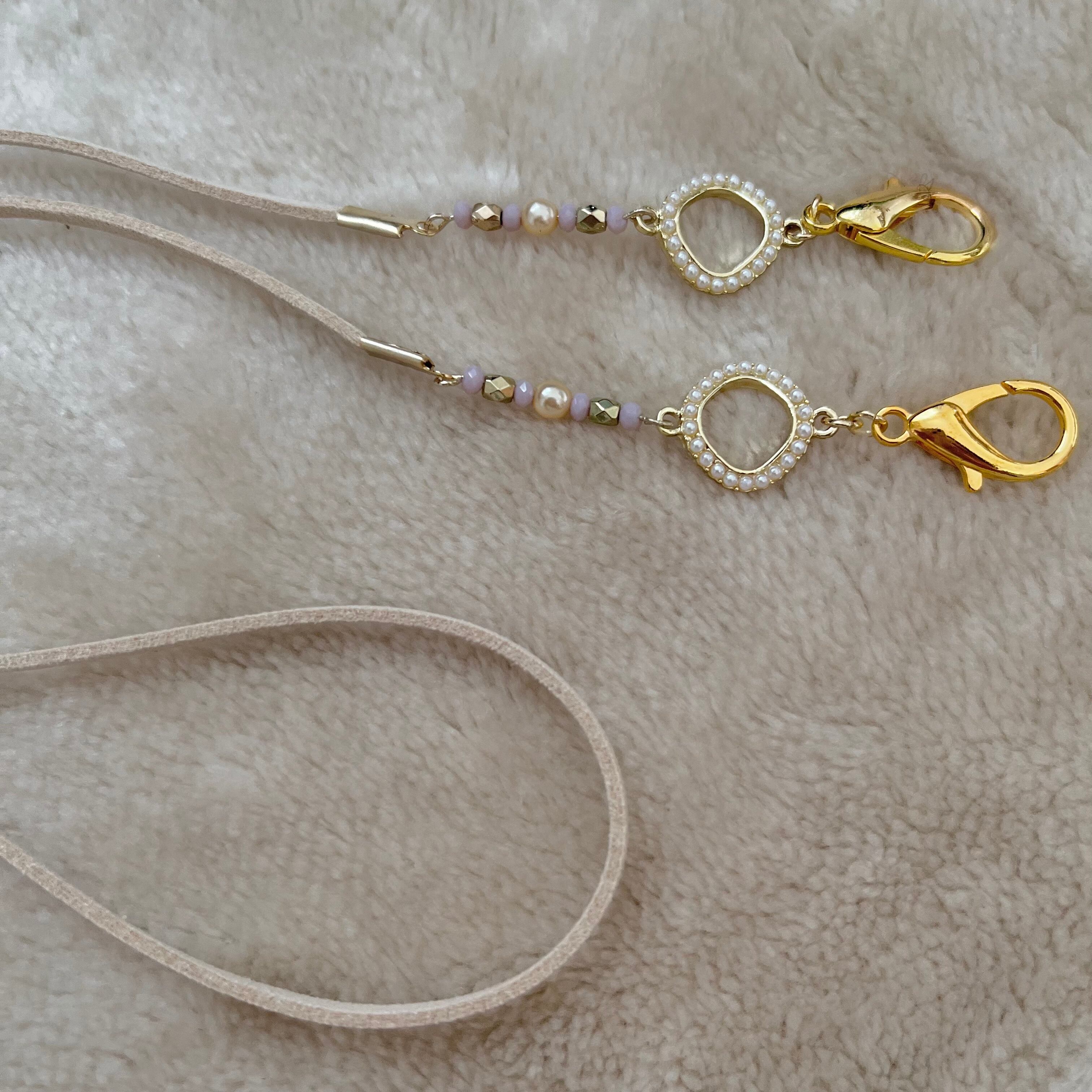 スエード調の合成ヒモやビーズを使用した大人可愛いマスクストラップです。