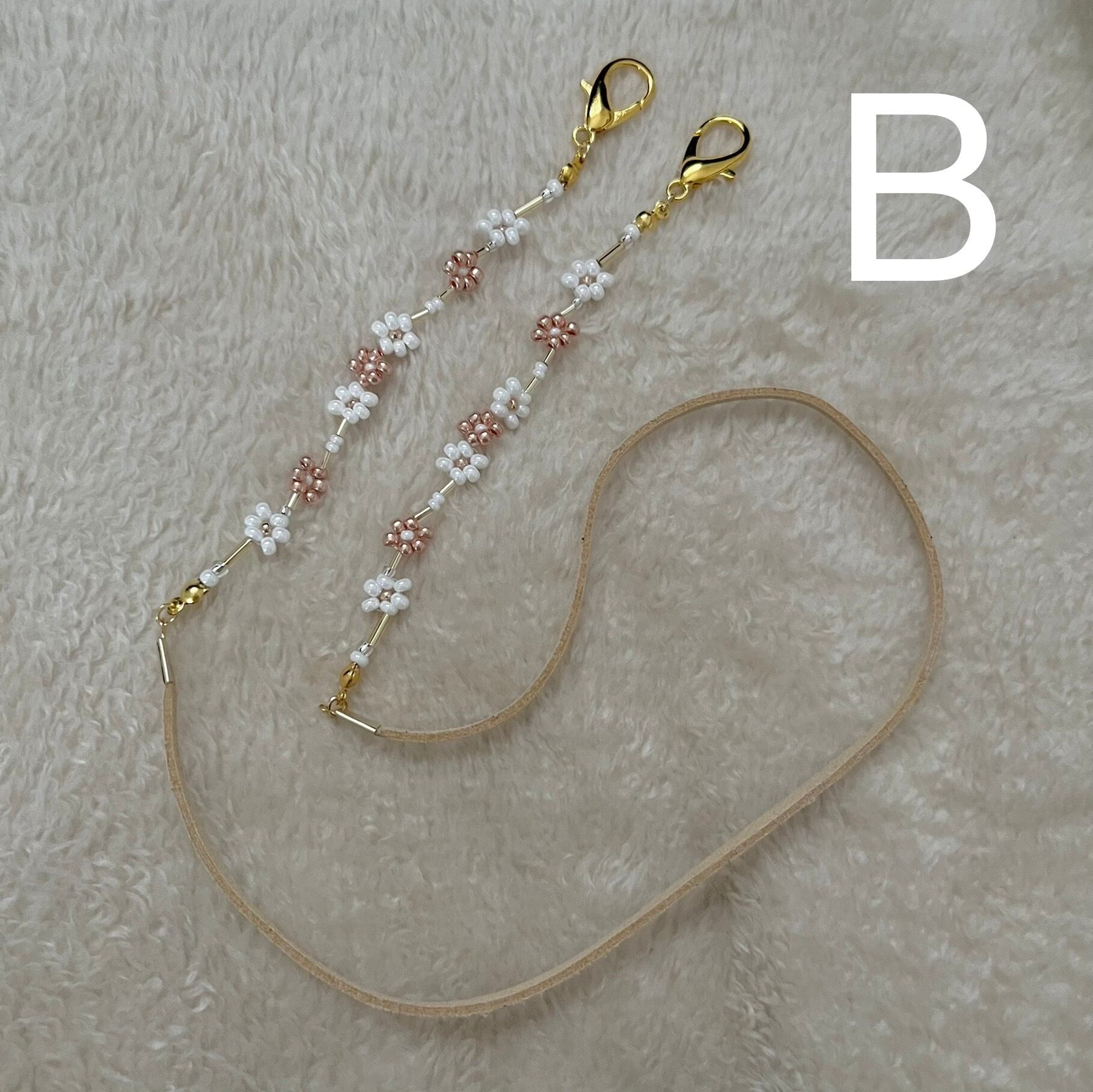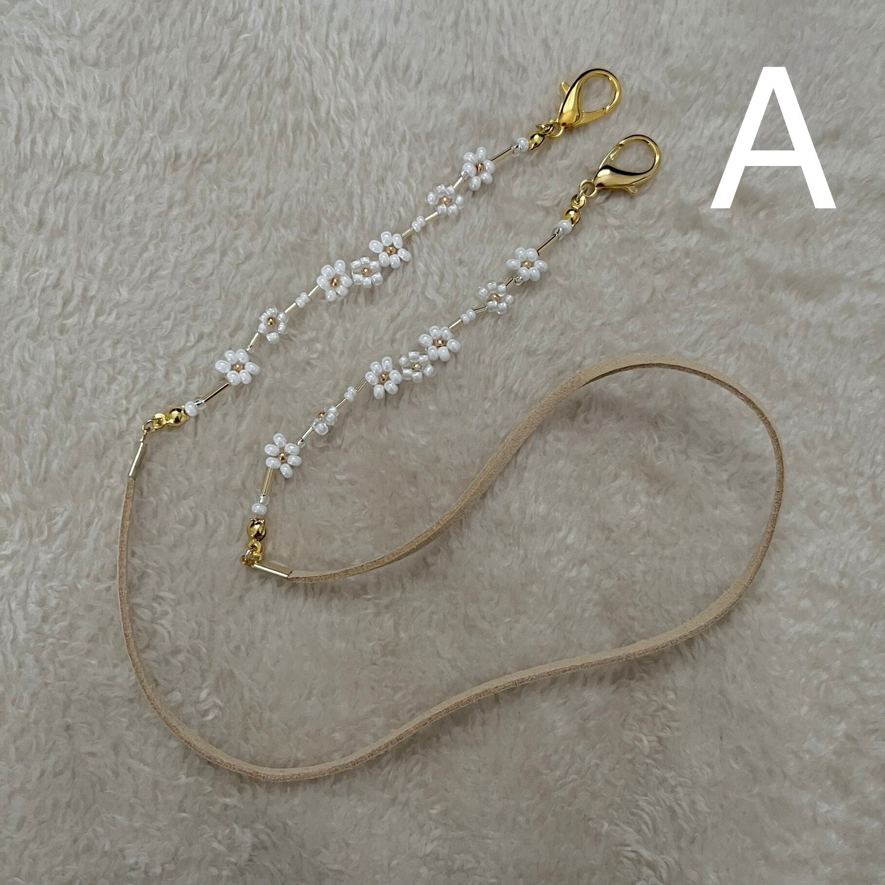 スエード調の紐とビーズを使用した大人可愛いマスクストラップです。