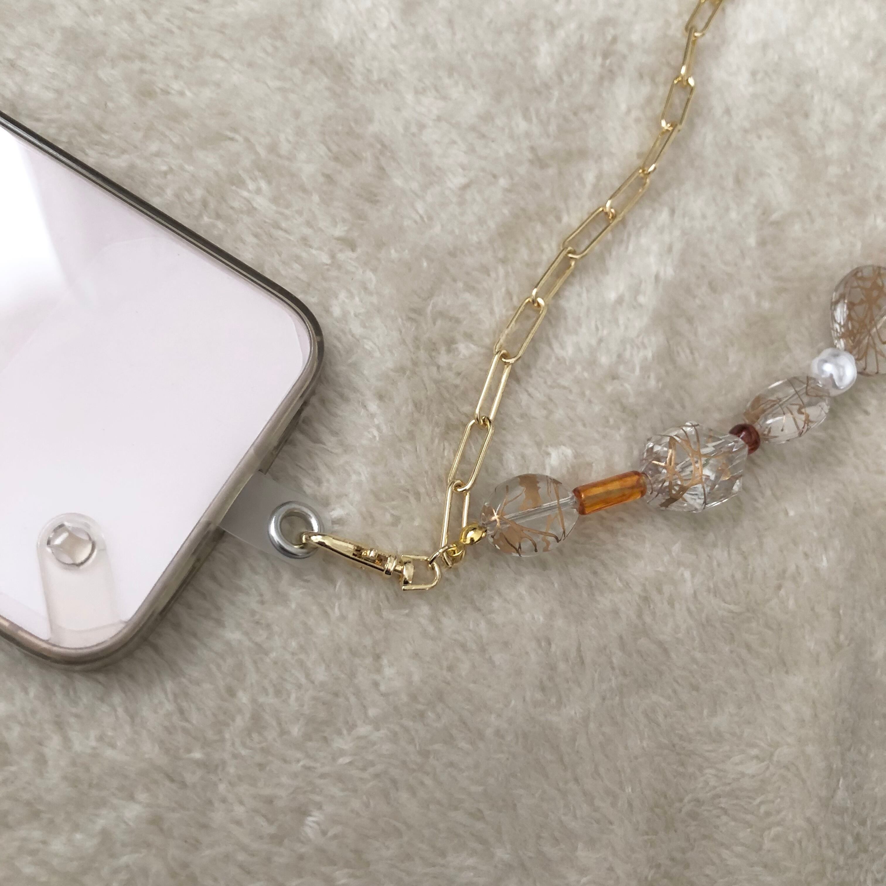 今流行りのビーズとチェーンを使用してオシャレに仕上げました。