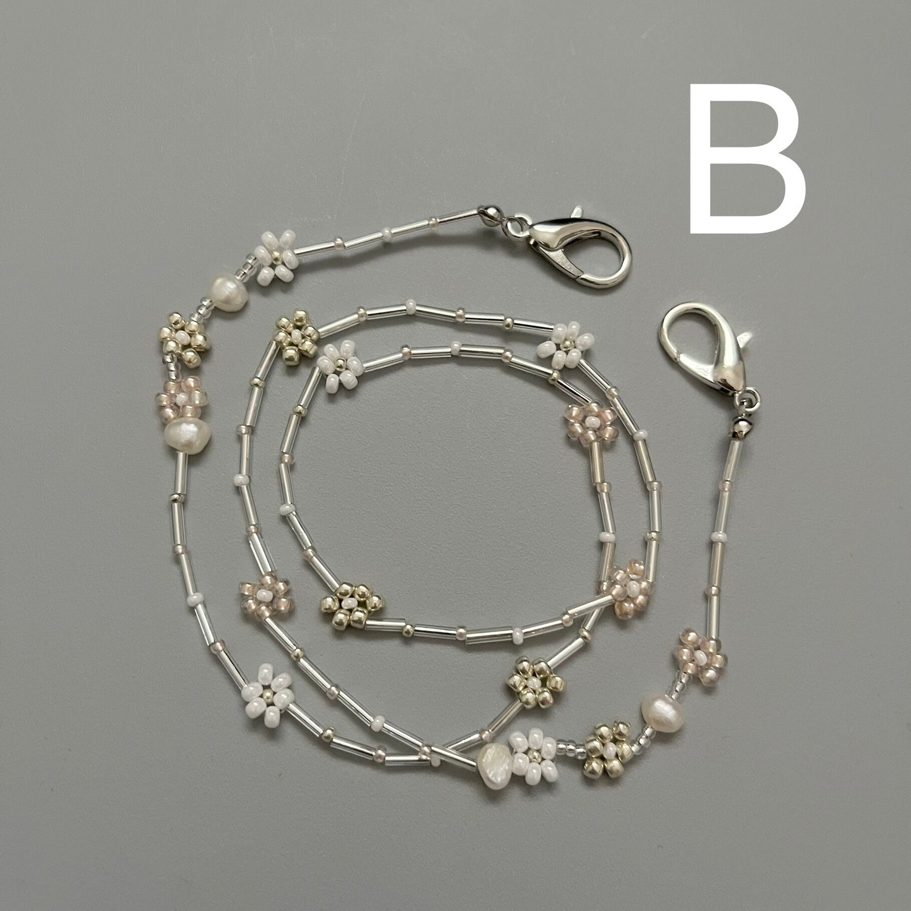 淡水パールを使用したマスクストラップです。