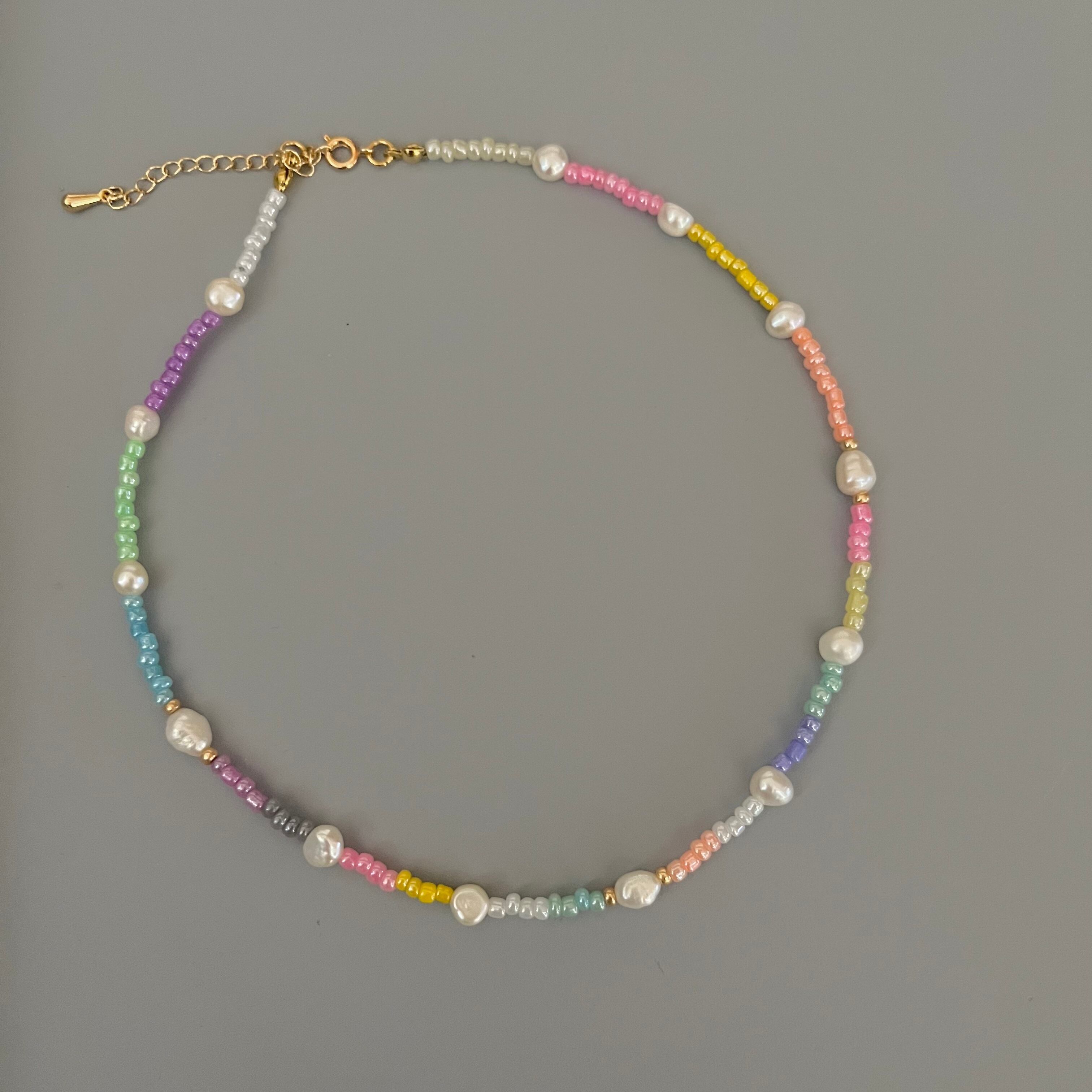 カラフルなビーズを使用しているため、シンプルコーデに合わせていただきたいアイテムです。