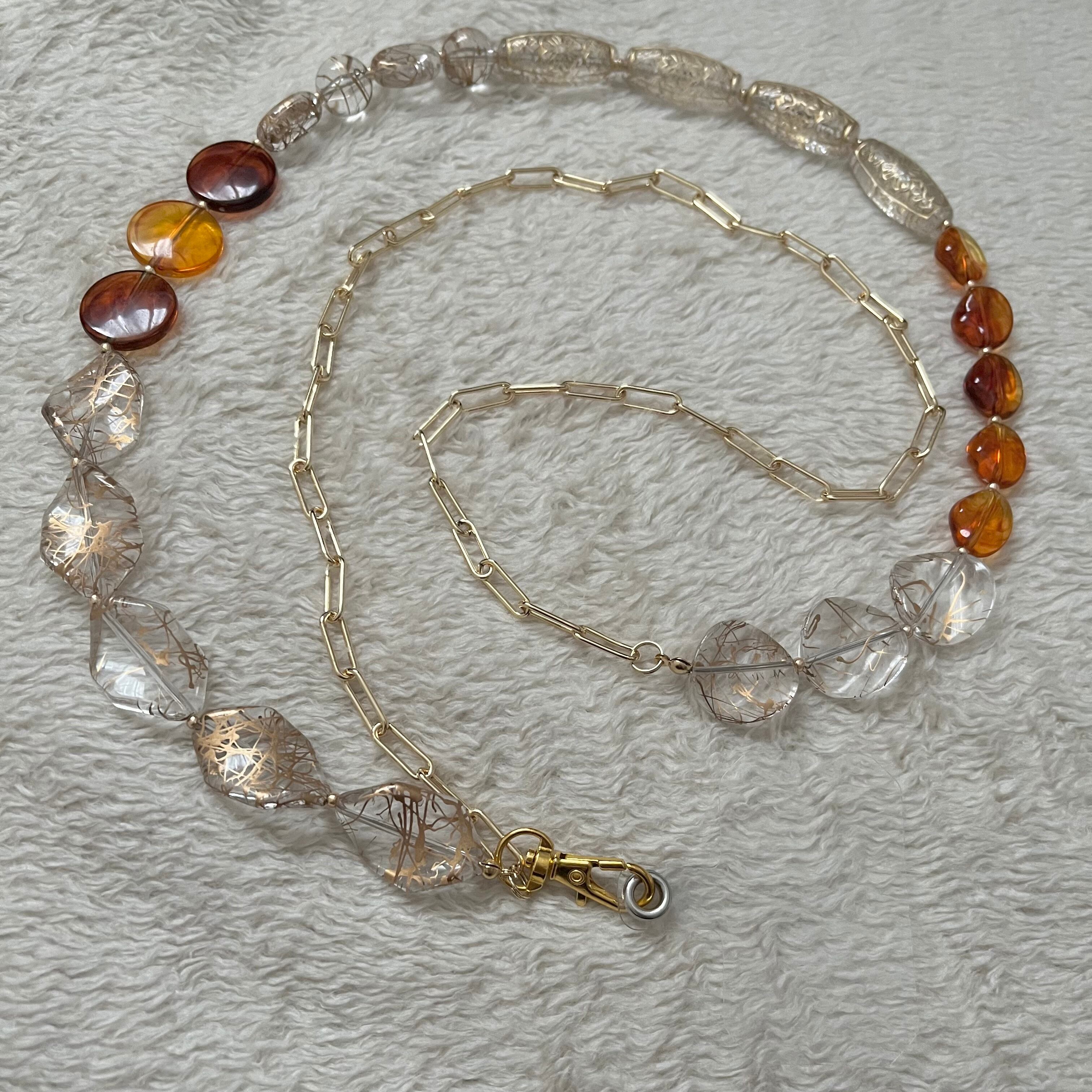 ビーズとチェーンのスマホショルダーストラップです。