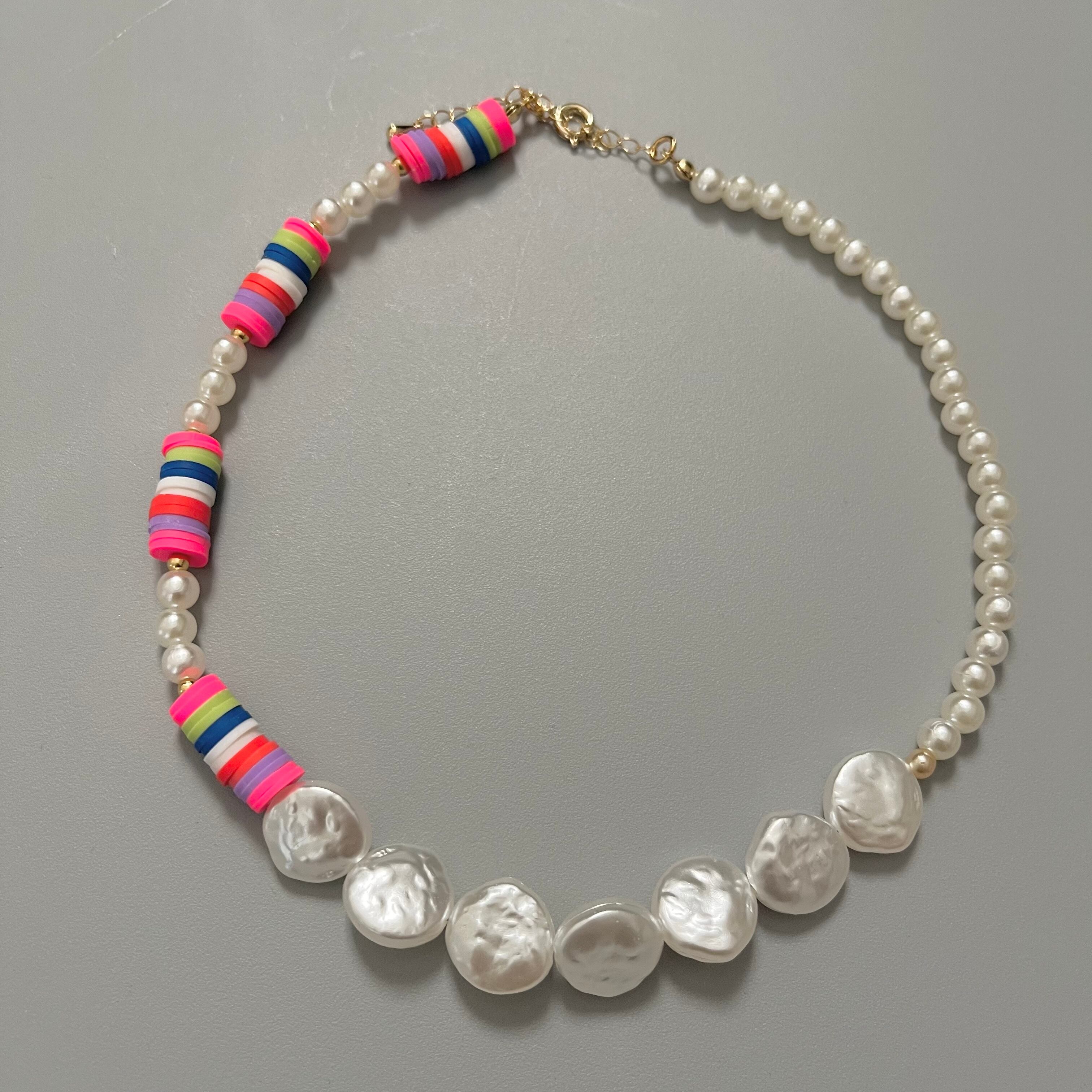 パールとカラフルなビーズを使用して、夏らしく仕上げています。