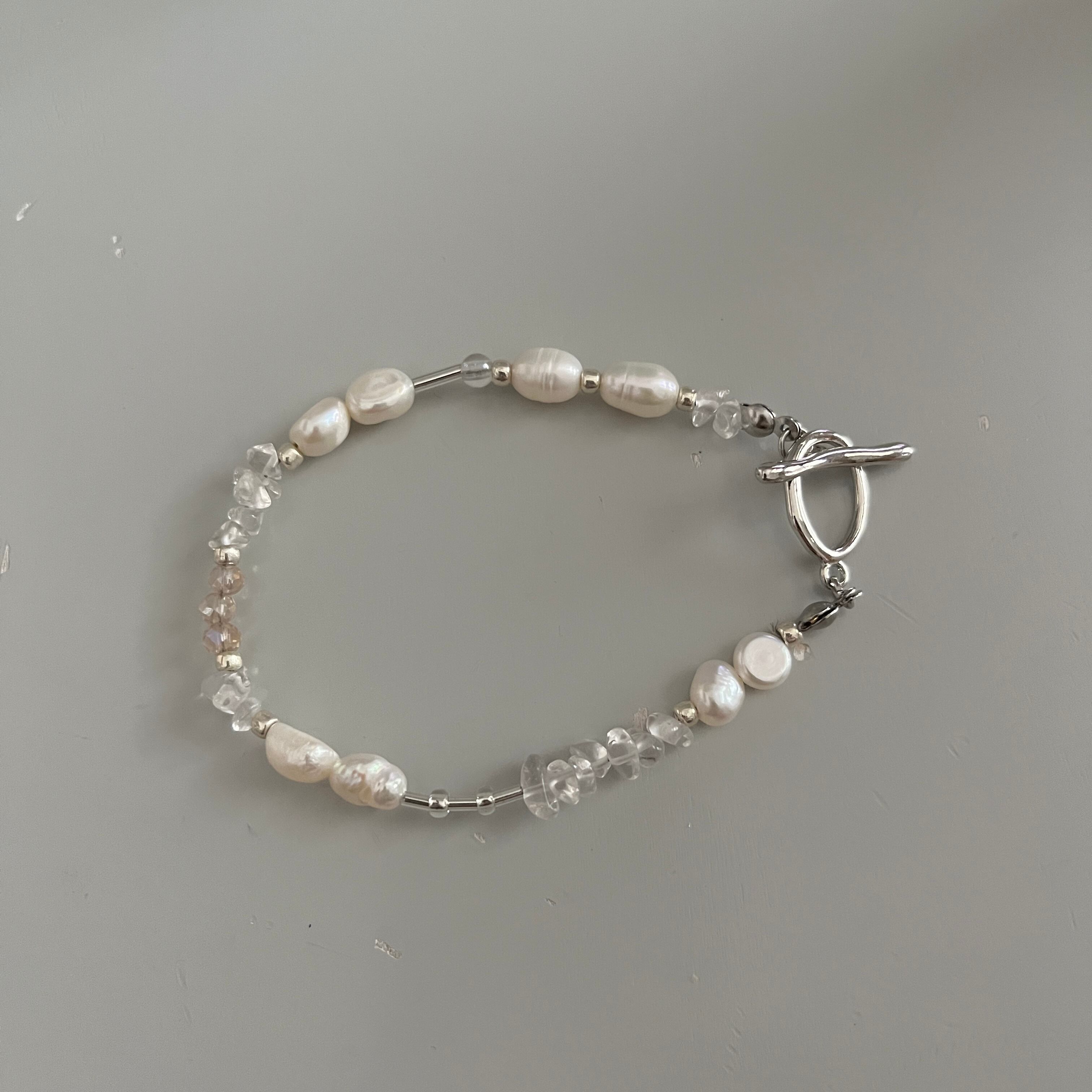 淡水パールと天然石の水晶を使用したブレスレットです。