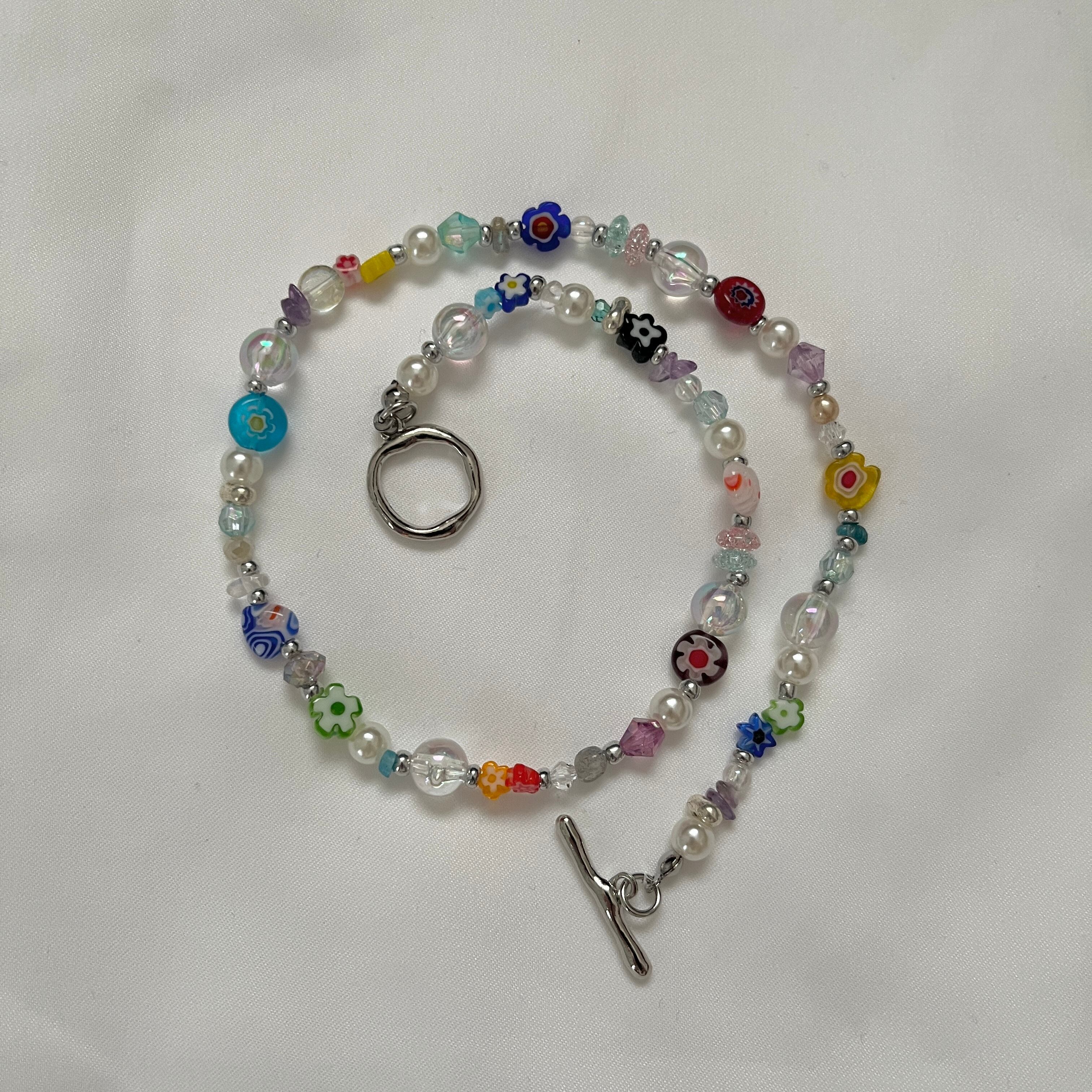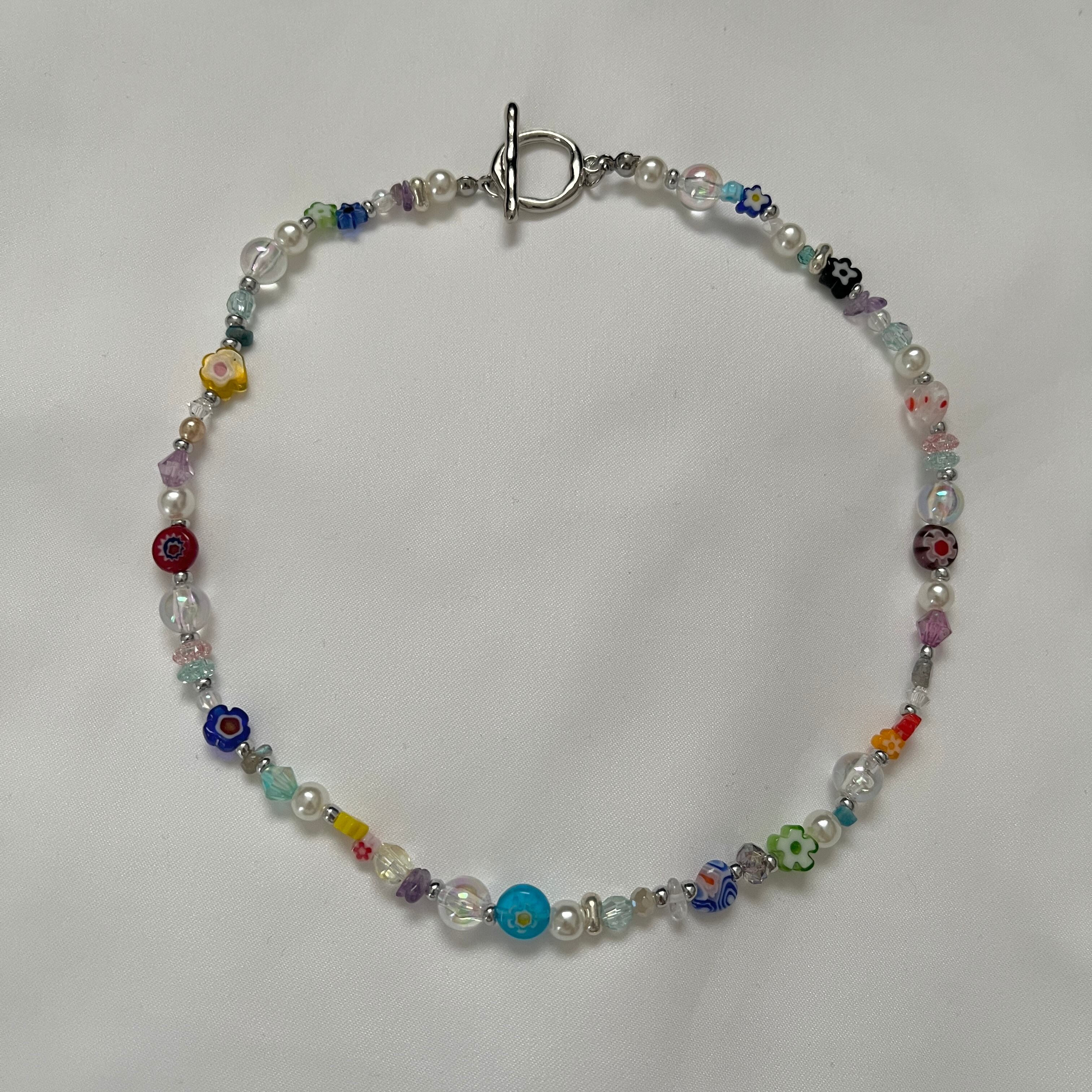 ミルフィオリビーズなど様々なビーズを使用したネックレスです。