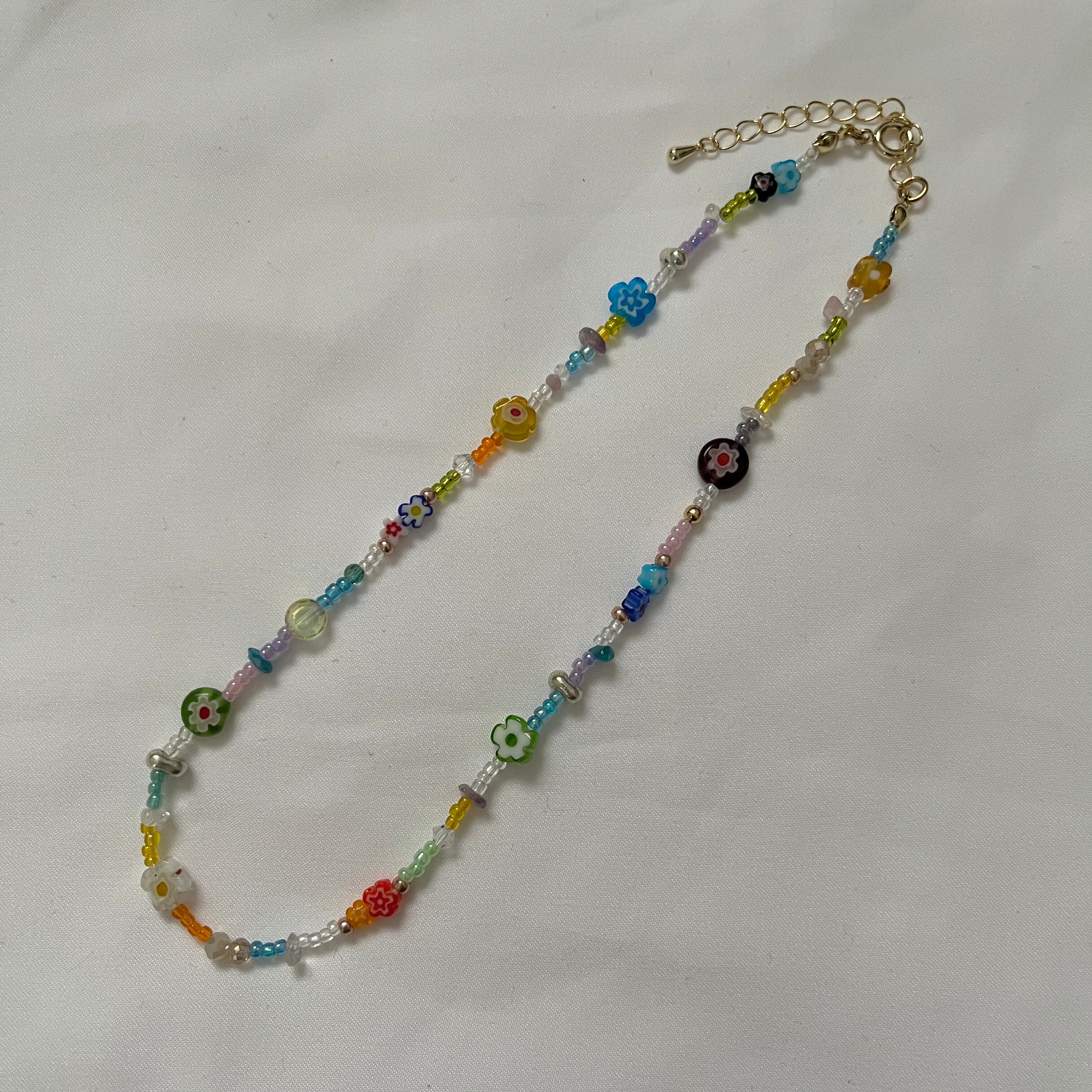 ミルフィオリビーズを使用し、カラフルに仕上げました。
